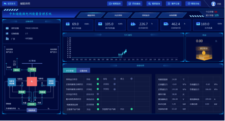 监测储能系统、电池管理系统(BMS)和储能变流器(PCS)运行,包括运行模式、功率控制模式,功率、电压、电流、频率等预定值信息、储能电池充放电电压、电流、SOC、温度,根据分时电价波动及企业峰谷特点设置储能系统的充放电策略,控制储能系统充放电模式,实现削峰填谷,风骨套利,降低企业用电成本。