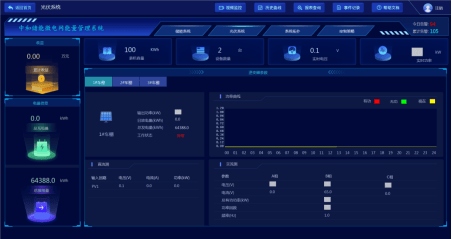 监测企业分布式光伏电站运行情况,包括逆变器运行数据、光伏发电效率分析、发电量及收益统计以及光伏发电功率控制。