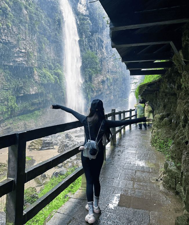 下午三点,在一炷香石柱前遇到当地土家族老人,他告诉我这根百米高的细长石柱在方言里叫乃哟啵,意为天神的手指。当夕阳将石柱染成金红色时,峡谷里突然传来高亢的山歌,几个背着竹篓的土家姑娘正沿着挂壁公路回家,她们的百褶裙在暮色中翻飞如蝶。晚上入住沐抚古镇的木楼客栈,推开雕花木窗,峡谷的夜风送来远处酒坊的苞谷酒香。